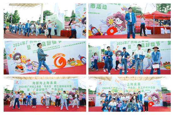 在運(yùn)動會出場儀式上,紡織公司代表隊(duì)時尚亮相,展示旗下新品牌產(chǎn)品,身穿自主設(shè)計(jì)的“GOGO”牌牛仔系列,手挽輕巧實(shí)用的“冰大師”塑料箱,踏歌伴舞生動演繹“美好生活,輕工相伴,向新向上,夢想璀璨”的開心快樂剪影,巧妙推廣輕工“廣貨”品牌文化,贏得全場熱烈互動和雷鳴般掌聲!
