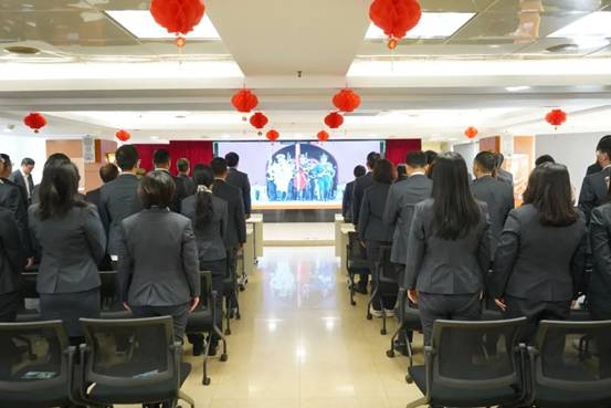 上午9點(diǎn),公司在廣德大廈15樓禮堂舉行了升國(guó)旗儀式,全體員工參與。簡(jiǎn)瑋儀代表領(lǐng)導(dǎo)班子在儀式上致辭。她指出,2025年是“十四五”收官之年,公司在2025年開(kāi)局就實(shí)現(xiàn)了開(kāi)門(mén)紅,希望大家在新的一年繼續(xù)堅(jiān)定信心,開(kāi)拓進(jìn)取,全力沖刺“十四五”目標(biāo),為“十五五”開(kāi)局起步奠定堅(jiān)實(shí)基礎(chǔ),為強(qiáng)國(guó)建設(shè)、中華民族偉大復(fù)興作出紡織人新的更大貢獻(xiàn)。