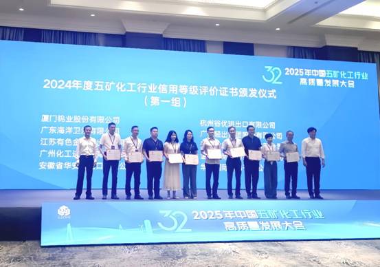 In June 2025, Guangzhou Chemicals lmport and Export Co., Ltd was rated as “AAA Credit Grade” by China Chamber of Commerce of Metals, Minerals & Chemicals Importers & Exporters (CCCMC), in recognition of its robust operational strength and industry contributions. This prestigious endorsement further validates the company’s high-quality development.