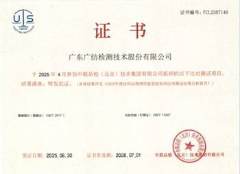 喜報:廣紡檢測參加兩項實驗室間比對獲得滿意結(jié)果