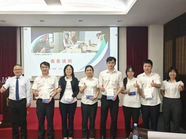 塑料公司副總經(jīng)理馮小眉為培訓課堂表現(xiàn)優(yōu)勝的團隊成員頒發(fā)了商務談判相關書籍的獎勵,并鼓勵大家會后深化理解商務談判知識,并將其運用到實際業(yè)務中,不斷提升個人談判能力,為公司贏得更有利的合作條件。