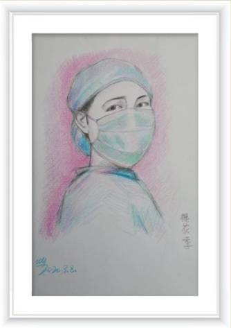 汪翊以抗“疫”為主題創(chuàng)作的素描作品