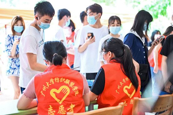 此次到現(xiàn)場為師生開展核酸檢測的12名醫(yī)護人員均來自暨南大學附屬第一醫(yī)院廣州華僑醫(yī)院。為了在最短時間內(nèi)阻斷病毒傳播途徑、切斷感染鏈條,醫(yī)護人員堅守在核酸采集一線,一絲不茍地為每個受監(jiān)測者采樣。他們在近期已是第五次接受“召集令”,馬不停蹄出戰(zhàn)支援學院開展核酸檢測工作。炎熱的天氣,加上厚重的防護服,汗水很快就浸濕了衣服,但他們不言苦累,一直奮戰(zhàn)到核酸檢測工作結(jié)束。