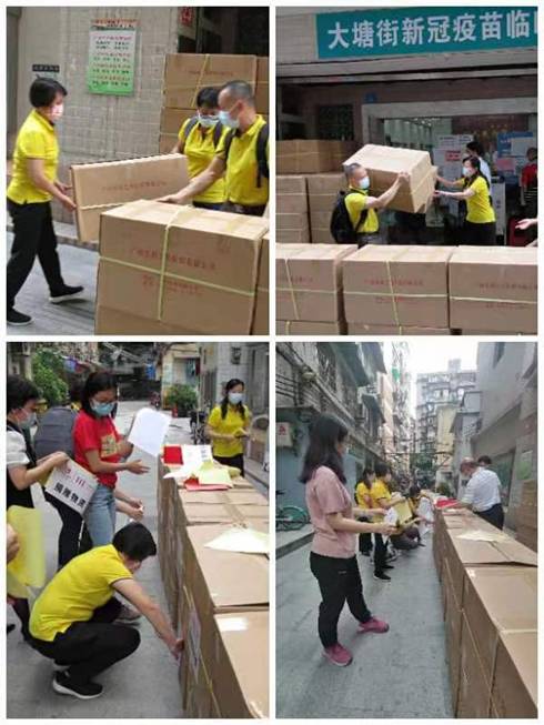 當(dāng)前,廣州疫情趨緊,4月12日,紡織公司黨委書(shū)記、董事長(zhǎng)簡(jiǎn)瑋儀,黨委副書(shū)記、紀(jì)委書(shū)記、工會(huì)主席丘海瀾親自帶隊(duì),把1500盒利工民毛巾送到了越秀區(qū)大塘街道。