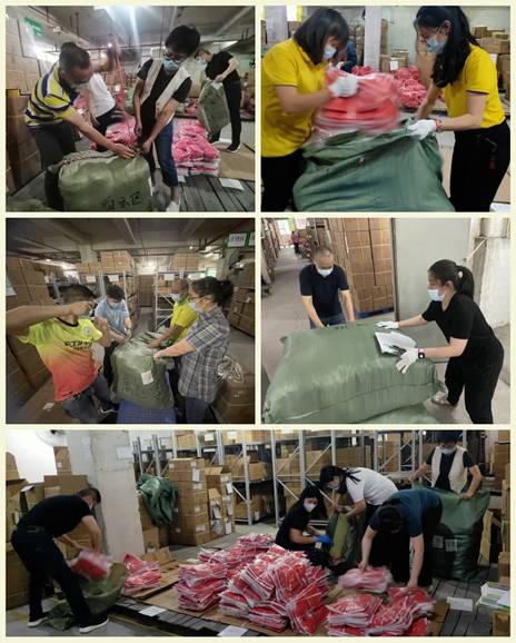 4月11日上午11時許,當(dāng)紡織公司收到廣州輕工集團(tuán)要求定制5萬件印有“我是共產(chǎn)黨員”字樣的志愿紅馬甲任務(wù)后,公司黨委高度重視,第一時間指導(dǎo)利工民組建黨員團(tuán)員突擊隊和生產(chǎn)專班,制訂詳細(xì)工作計劃及分工。一周內(nèi)出這么大批的貨是一個不小的挑戰(zhàn),而且馬甲貨源還分散在廣州、佛山及浙江一些城市的倉庫中。如何才能以最快速度調(diào)集貨源、如何根據(jù)需求安排好每日出貨量、如何精準(zhǔn)配送到每條街道……這些現(xiàn)實的問題都擺在了工作專班面前。面對這些問題,利工民總經(jīng)理鄭力強(qiáng)迅速理清思路、靠前指揮,一邊率領(lǐng)工作專班與上級部門、供應(yīng)商保持密切聯(lián)系,對接好各個工作環(huán)節(jié);一邊積極做好內(nèi)部人員調(diào)配工作,確保高效完成出貨任務(wù)。