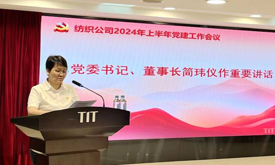 會(huì)議要求,做好下半年黨委各項(xiàng)工作,要深學(xué)篤行習(xí)近平總書(shū)記關(guān)于黨的建設(shè)的重要思想,深入學(xué)習(xí)領(lǐng)會(huì)黨的二十屆三中全會(huì)精神,不斷激發(fā)以黨建促發(fā)展的內(nèi)生動(dòng)力,提升意識(shí)形態(tài)工作引領(lǐng)力,認(rèn)真履行全面從嚴(yán)治黨主體責(zé)任,以實(shí)際行動(dòng)彰顯使命擔(dān)當(dāng),為全面完成紡織公司各項(xiàng)改革發(fā)展任務(wù)目標(biāo)提供堅(jiān)強(qiáng)的政治動(dòng)力和組織保證。